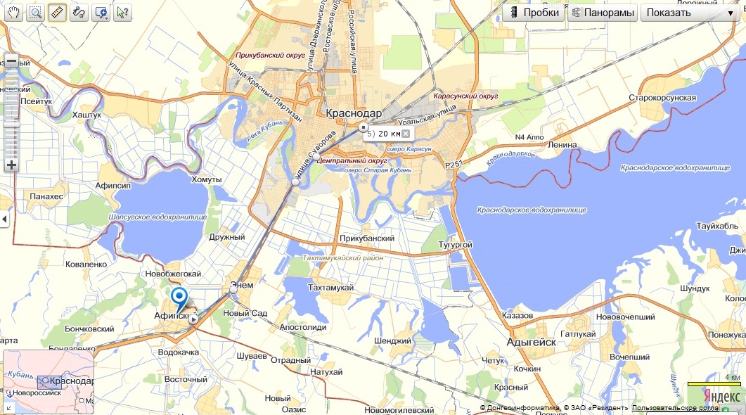 От Афипского до центра Краснодара 20 км