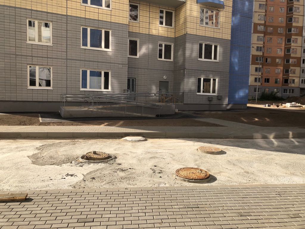 Сданный месяц назад 15 корпус, в котором до сих пор не горит ни одного окна, и нет нормальных дорожек перед 2-ям подъездами, картина маслом: два работника с одной киркой со скоростью 1 удар в минутку сколупывают остатки выложенных плиткой дорожек, по моему КПД этого процесса скорее отрицателен. Я ещё очень хорошо помню реальное кипение в корпусе прошлым летом... территория была, без изысков в виде резинового покрытия, но аналогична состоянию нынешнему территории 9 корпуса. И вот теперь минус 2 года. Начинаем сначала...