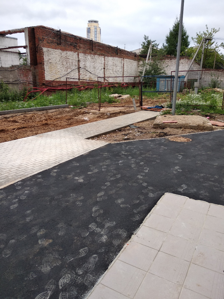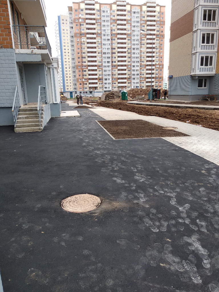 #504271-4 подъезды 8 корп., тротуар восстановлен, подъехать невозможно, дороги пока нет.