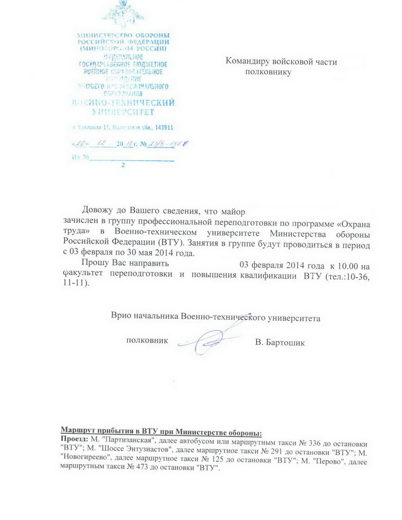 Прислали уведомление о профессиональной переподготовке в военно-техническом университете (г. Балашиха)