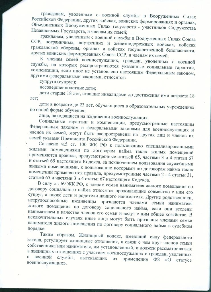 Re: Жилищное обеспечение членов семьи военнослужащего