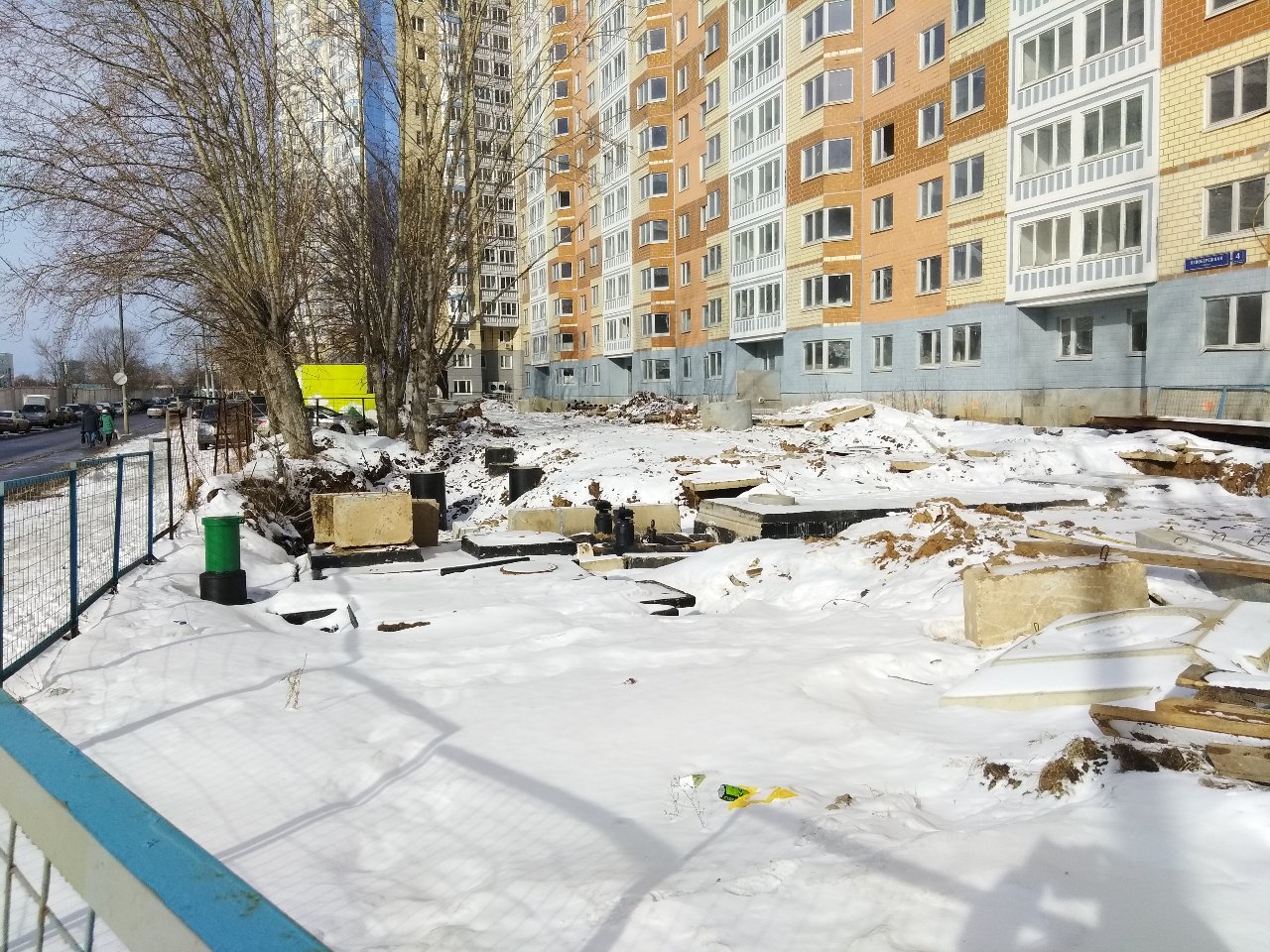 Вчера посетил многострадальный район. Сразу скажу, что корпуса IV очереди оптимизма не внушают. Даже показалось, что количество открытых/отсутствующих окон увеличилось. Между домами все перерыто, какой-то строительный мусор...