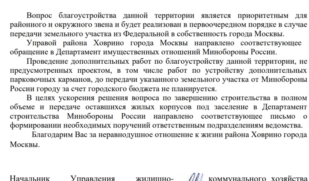 #544251. Как мне кажется, ключевая фраза - "объекты ВОЕННОЙ инфраструктуры" к ЛВБ не применима. ЛВБ - объекты ГРАЖДАНСКОЙ инфраструктуры г.Москвы. Вот тут-то "собака" и зарыта! Земля Минобороны. Пока не достроят и не сдадут про облагораживание силами префектуры гарнизонного городка можно забыть.