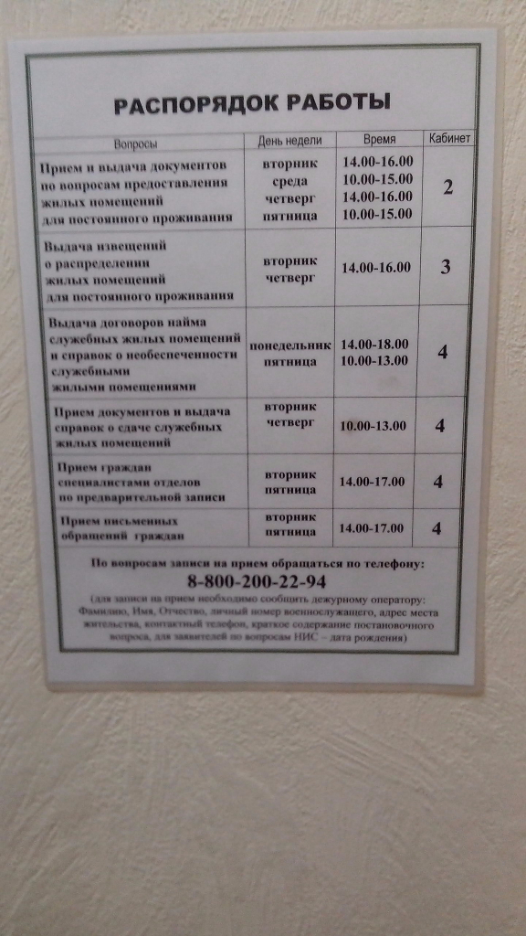 #5488Нужна справка ораспределении жилья и отсутствии служебного жилья. На письмо пришёл ответ о распределении жилья, про служебное ничего не указали. Пришлось повторно отправлять письмо по электронной почте с запросом справки об отсутствии служебного жилья. Скоро месяц - документ не исполнен до сих пор по информации с горячей линии. Подскажите телефон 5 отдела, который занимается служебным жильём.