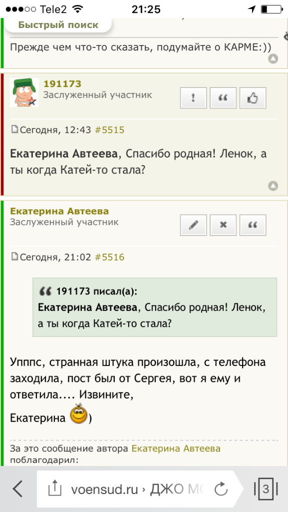 #5514Упппс, странная штука произошла, с телефона заходила, пост был от Сергея, вот я ему и ответила.... Извините,[ref]Екатерина Автеева[/ref], Спасибо родная! Ленок, а ты когда Катей-то стала?