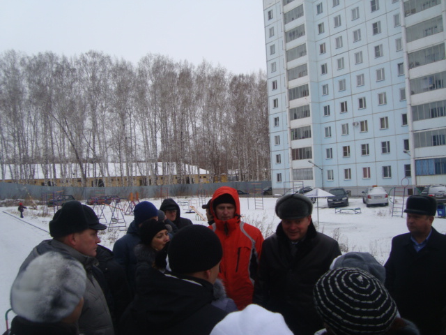 На вопрос (второго плана) о детской площадке в присутствии начальника "Стройальянса" указал на подрядчика, который был не в восторге от услышанного ...