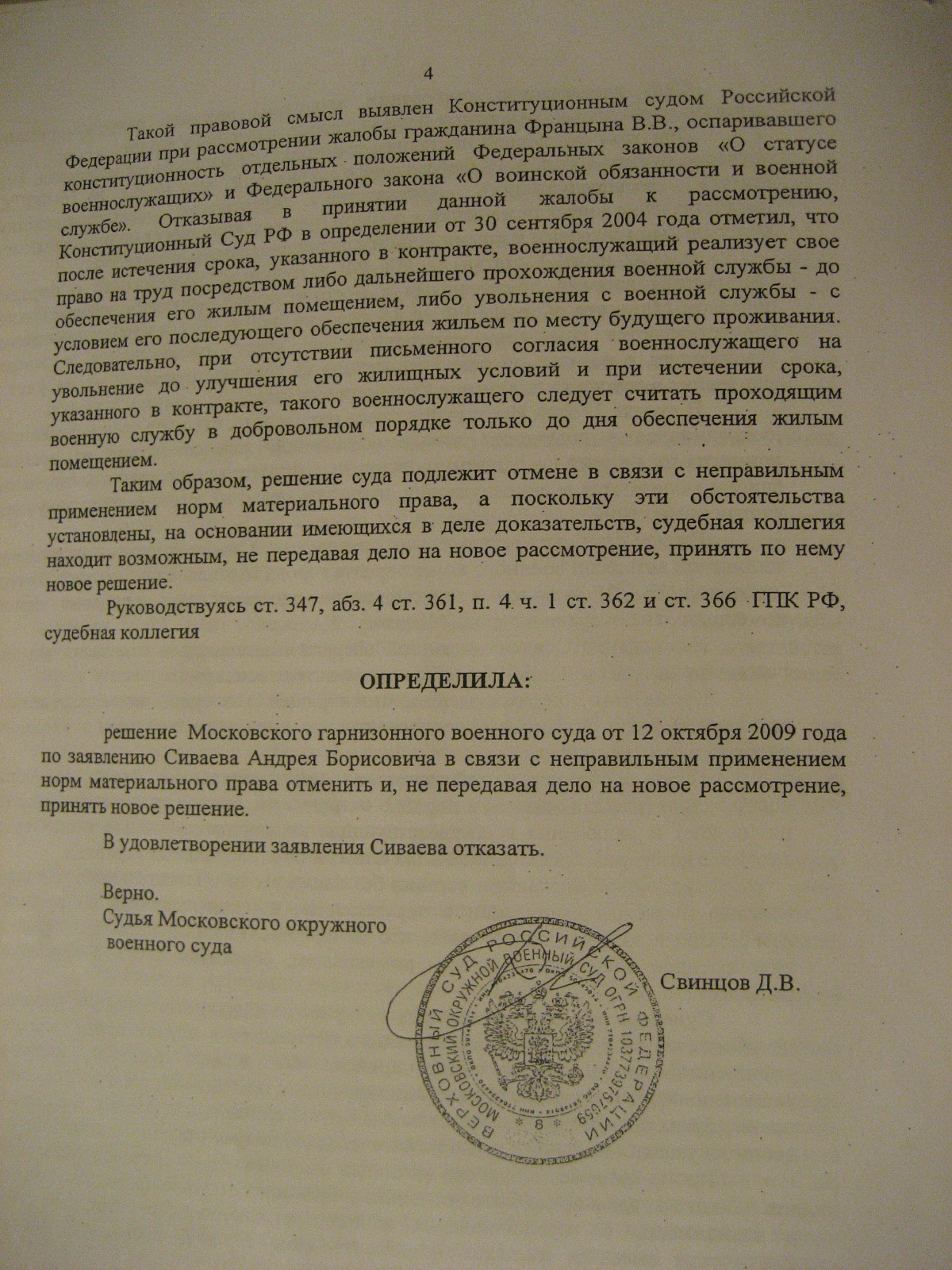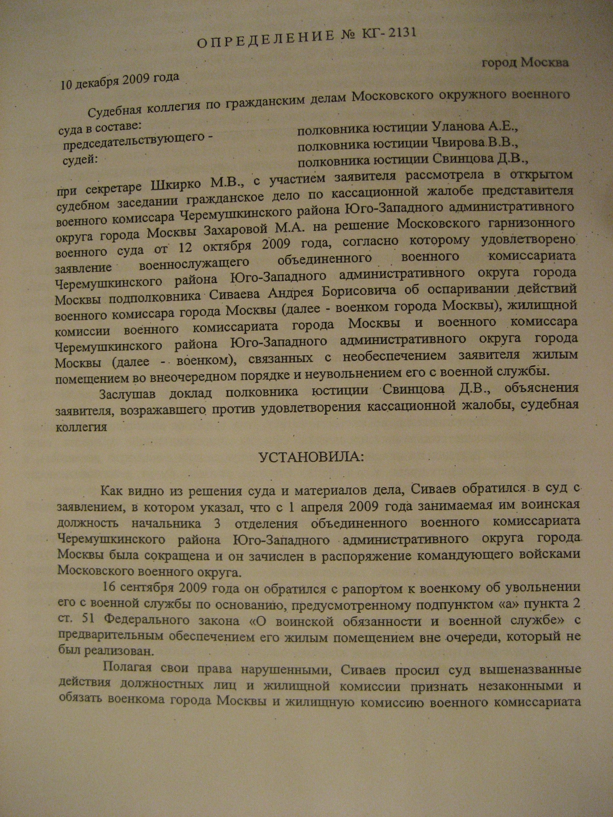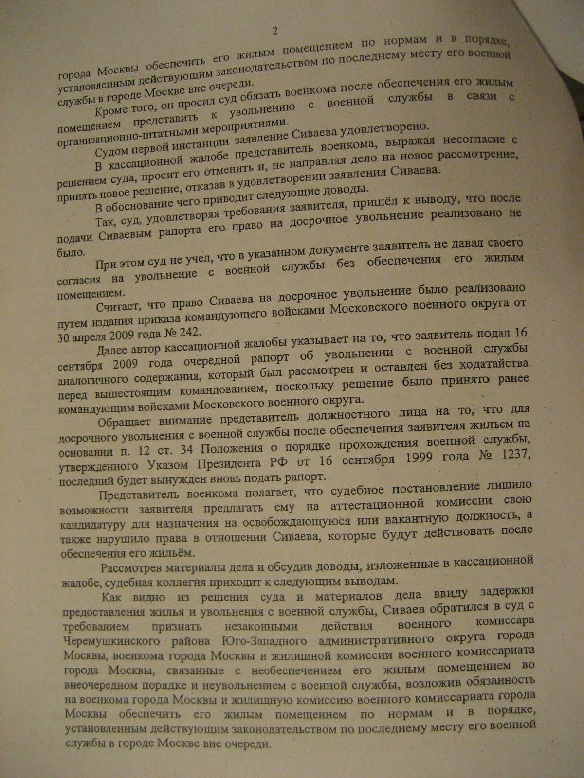 На днях был в МГВС знакомился с материалами дела. Узнал от одного из заявителей обжаловашего бездействие командования связанное с неувольнением и не обеспечением жильём. В результате суд ему во всех требованиях отказал. Он хотел уволиться по ОШМ и получить жильё в Москве во внеочередном порядке. Попал под изменившуюся судебную практику по этому вопросу. Сильно сокрушался, что его сослуживцы в конце года получили положительные решения, а он отказ. Он не мог понять как такое может быть. Теперь у него только один путь в кассацию и там получить "заверение" в правильности решения, а далее???