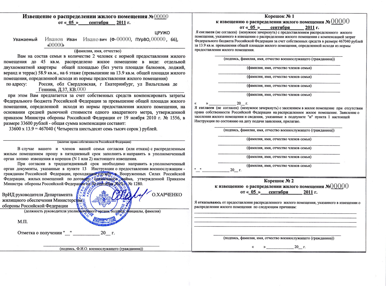 1.При согласии: Согласен, с существееным условием передачи жилья в собственность после перечисления всей суммы указанной в извещении №-- от ___.