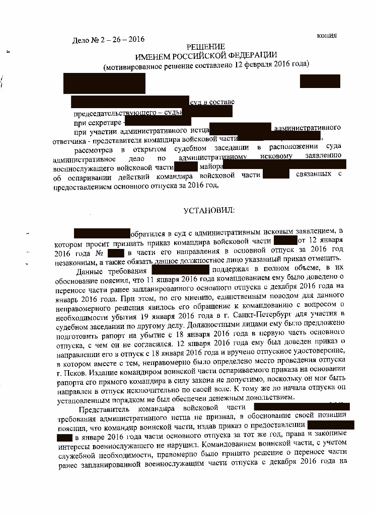 сказал он больше, чем написал. Был еще 1 суд по отпуску за 2015 год - как раз там прот 2 мест. Но пока он длился документы были переделаны и в мой отпускной перед судом были допечатаны еще 2 города (2 - командирские + 2 которые я заявлял.QR_BBPOST сказал!? А можно на решение суда посмотреть