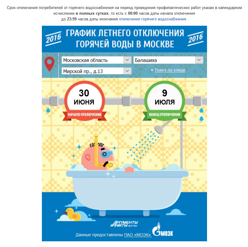 #5875На сайте МОЭК, которая является теплогенерирующей компанией для наших домов, появился график отключения горячей воды.