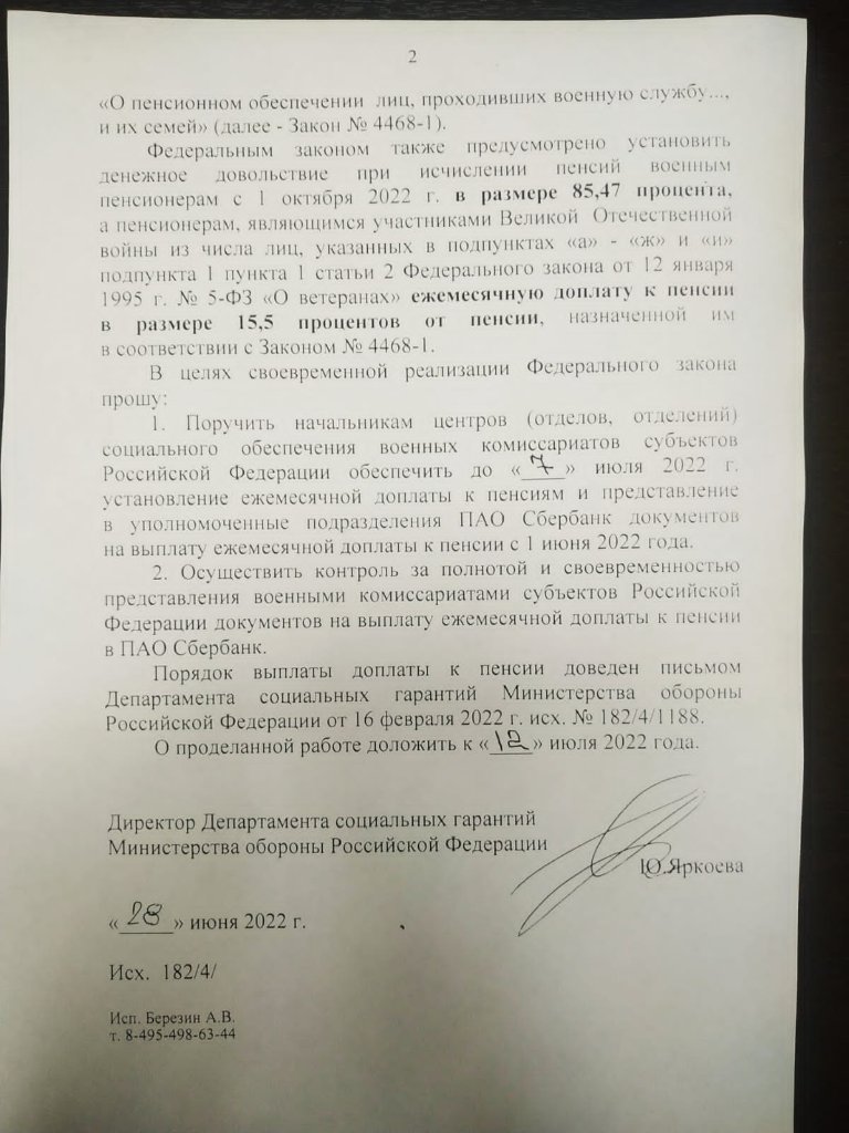 Андрей Валериевич вместе с Антоном Германовичем всё просчитали и оформили законодательно повышение военных пенсий с 1 июня на 10%.