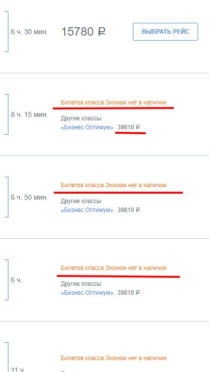 Более того, даже класса Комфорт нет, остался только Бизнес.