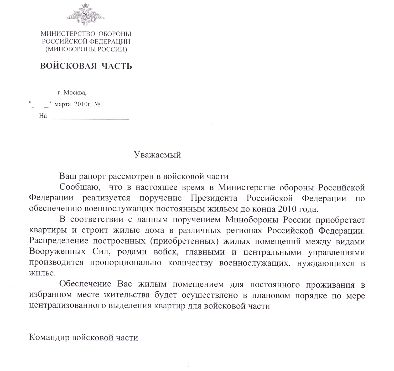 "...на момент рассмотрения заявления не было законных оснований для возложения на командира войсковой части обязанности по обеспечению snaiper1960 жильем в избранном им месте жительства..." На суде (в протоколах дела) есть подсчет - от 40 до 49 кв.м. И сейчас только отписки с ГЛАВКа получаю, типа жилье такой площади не выделялось, не закупалось.... сидите в распоряжении и ждите....в 2010 президент поставил задачу обеспечить....