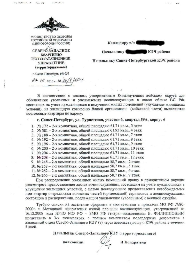 В июле 2010 года мне пришел отказ на квартиру, ввиду превышения нормы распределения, квартиру распределяли еще до образования ДЖО т.е отказ был из жилищного отдела РВСН.