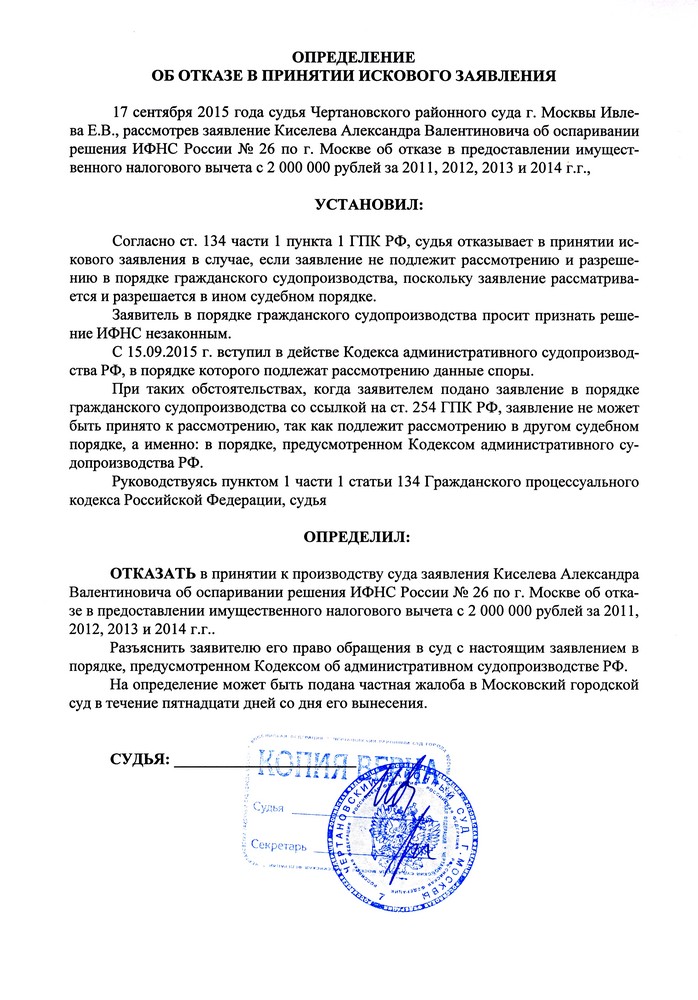 ГВС вынесло решение в июне месяце 2015 года. Дело рассматривалось в порядке главы 25 ГПК РФ.