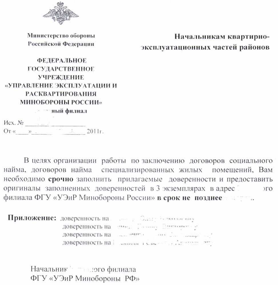 По сути дела, все равно все вопросы, в том числе и по приватизации останутся в ведении КЭЧ, не смотря на доверенность.