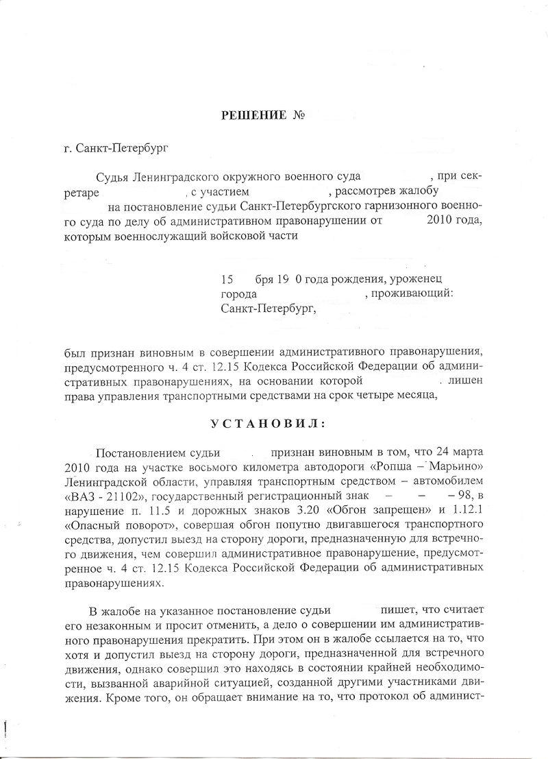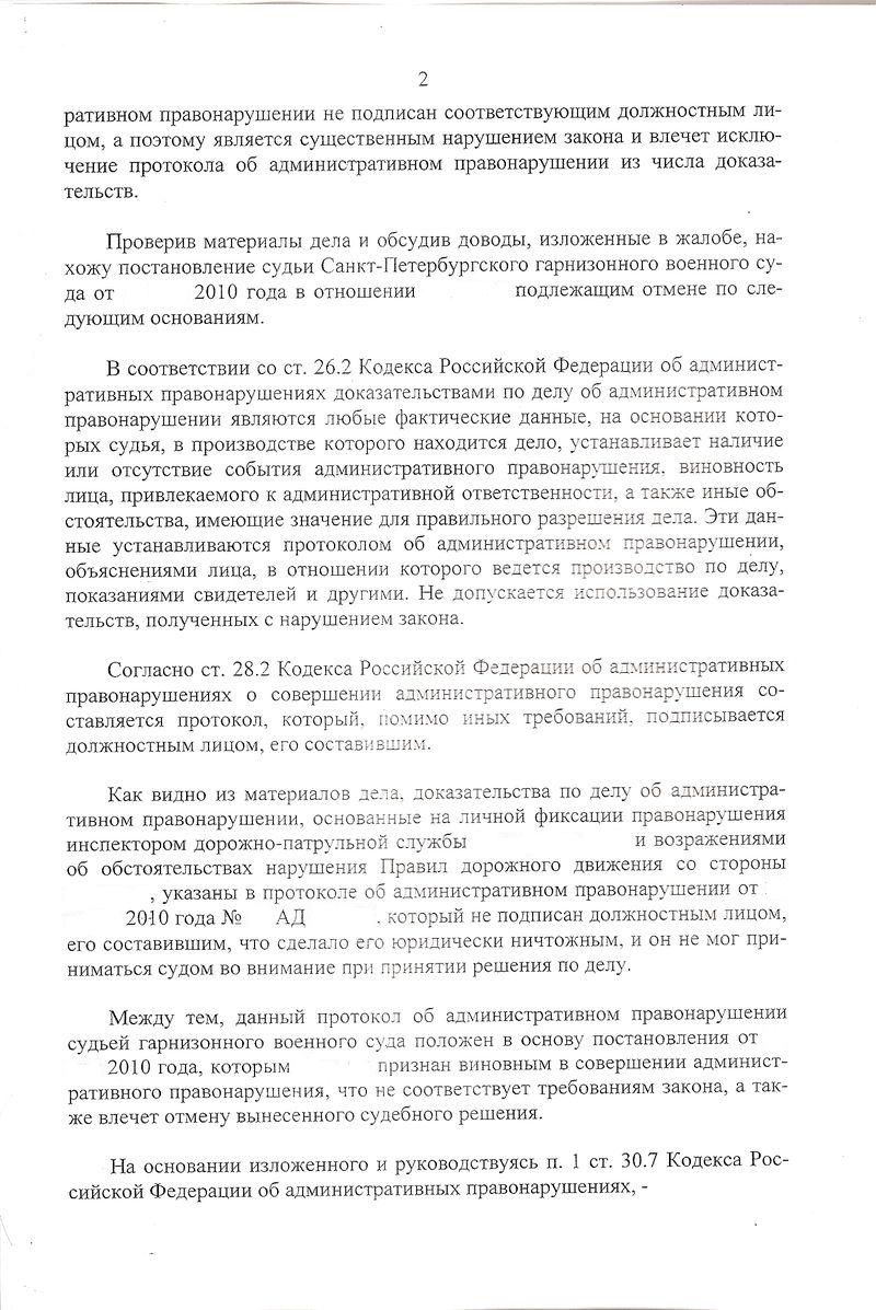 11 июня 2004г. ХХХХ гарнизонным военным судом вынесено постановление по делу об административном правонарушении в отношении меня. полагаю что данное решение является незаконным и подлежит отмене: