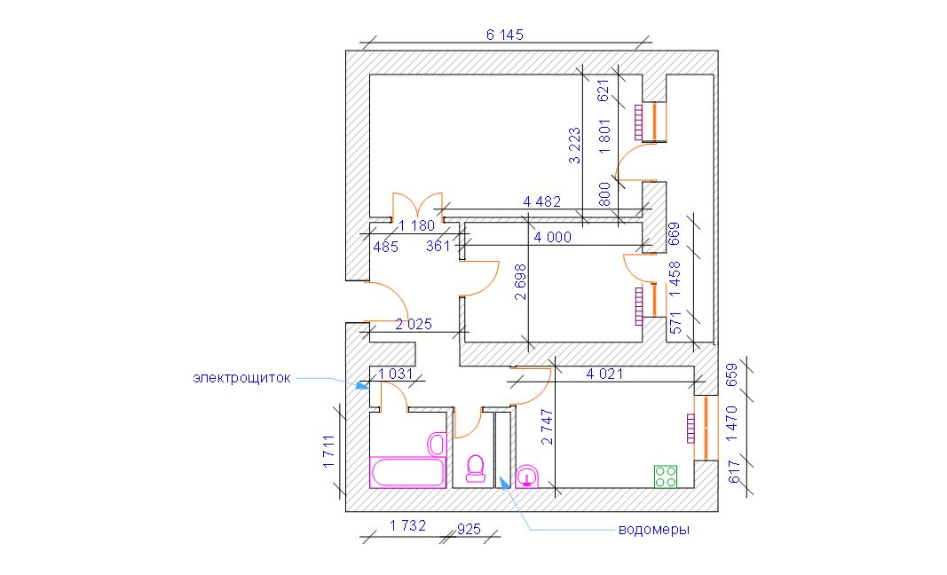 Это уже БТИ сделало или вы??Выкладываю планировку 2-х комнатной на Черниговской для предварительной расстановки мебели (размеры +-2 см согласно китайской рулетки