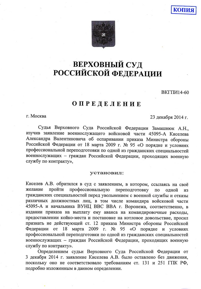 lost Вам venta разъяснил очень доходчиво. У меня было решение суда - восстановить в списках части до прохождения переподготовки. Я у командира истребовал аванс, он отказал, у начальника ВУНЦ истребовал койко-место и поставить на довольствие на время переподготовки - отказал. Я написал заявление в Верховный суд, чтобы признали не действующим пункт пр. 95, в котом указывается, что военнослужащий прикомандировывается к учебному заведению.
