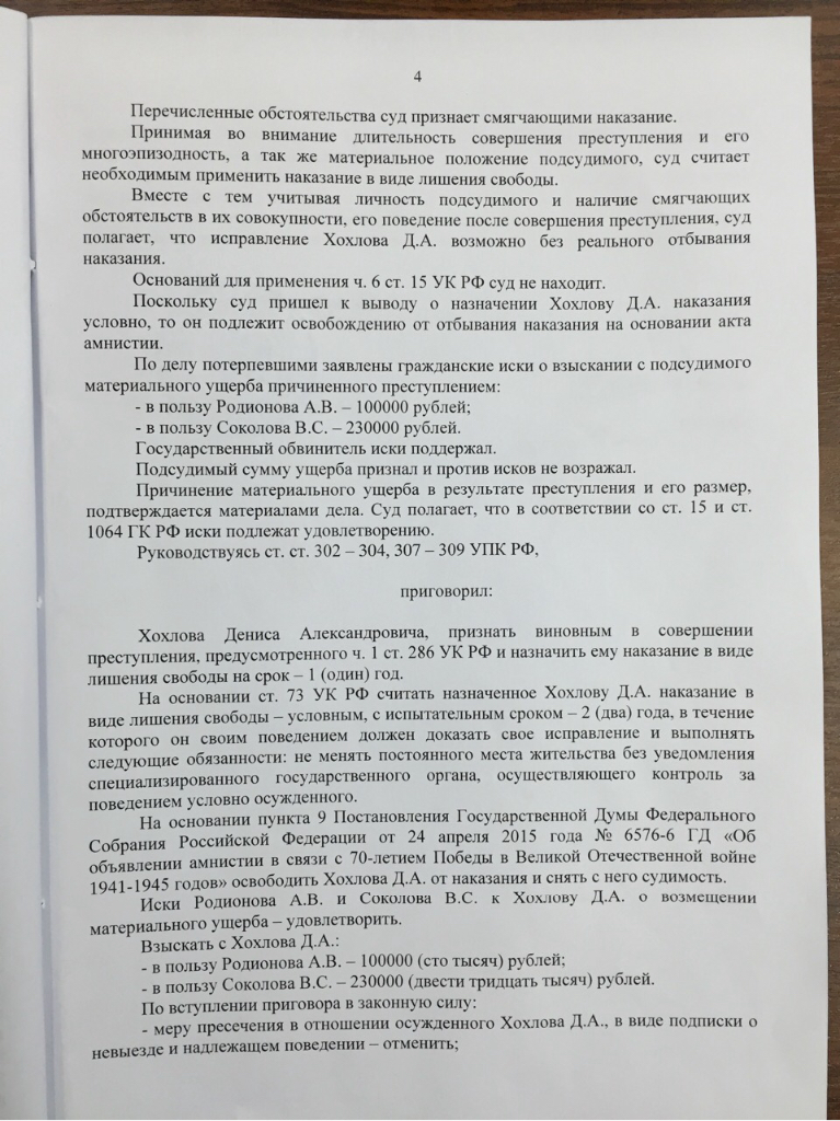 "Суд признал виновным ч1 ст286 и назначил наказание 1 год.