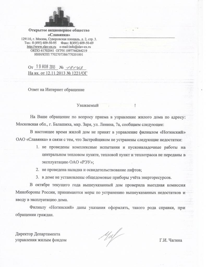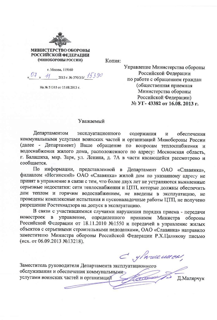 #63105 ноября направила еще одно письмо на имя президента с приложением сканов документов, в котором пожаловалась на перекладывании груза ответственности за устранение недостатков по дому с одного департамента на другой, а этого другого на первый, а также на новые причины не заселения Славянки. Сегодня получила ответ, все как обычно: рассмотрено и направлено.......