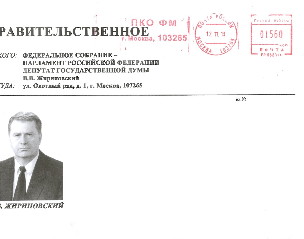 Порадовало письмо из ЛДПР. Мало того, что прислали самый увесистый конверт, так с него еще САМ, Владимир Вольфович, смотрит.