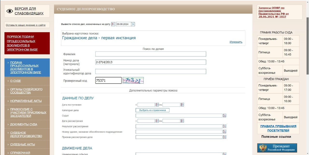 28.06.2013 иск зарегистрирован в суде