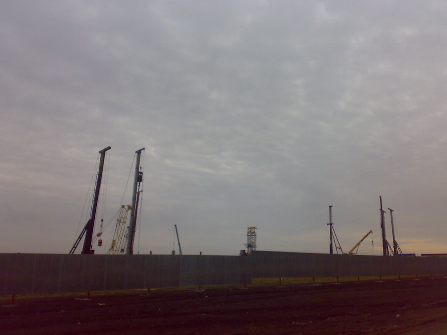 В воскресенье блоков на самой стройке не было. Блоки были внизу на складе, там и обживают комнаты-блоки для строителей. Может за несколько дней и подвезли. Первые этажи вряд ли.После свай надо еще фундамент залить.