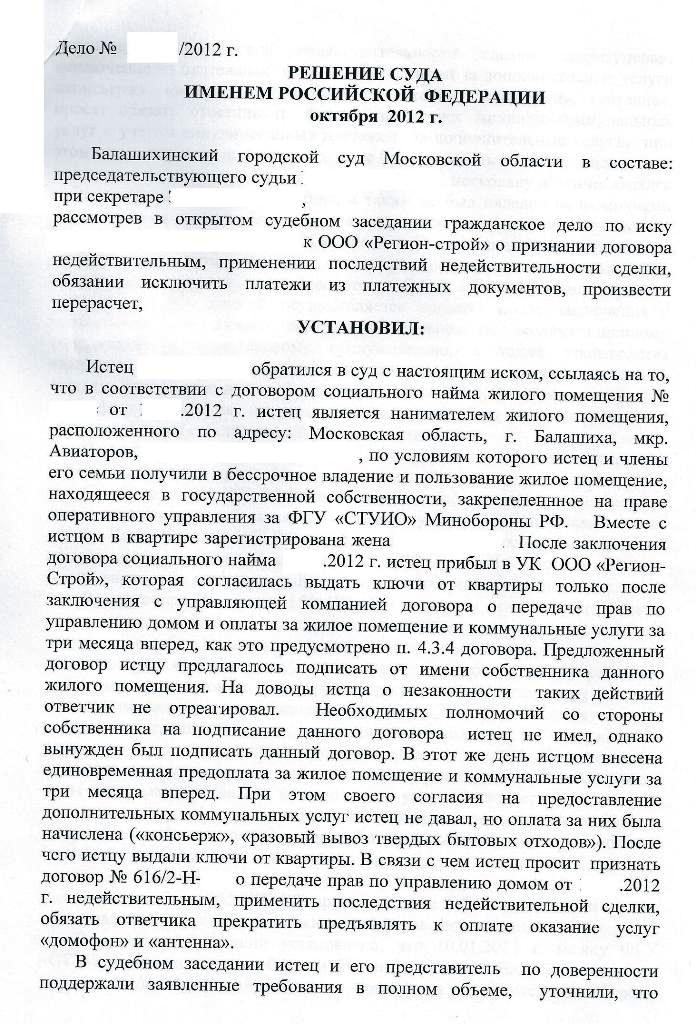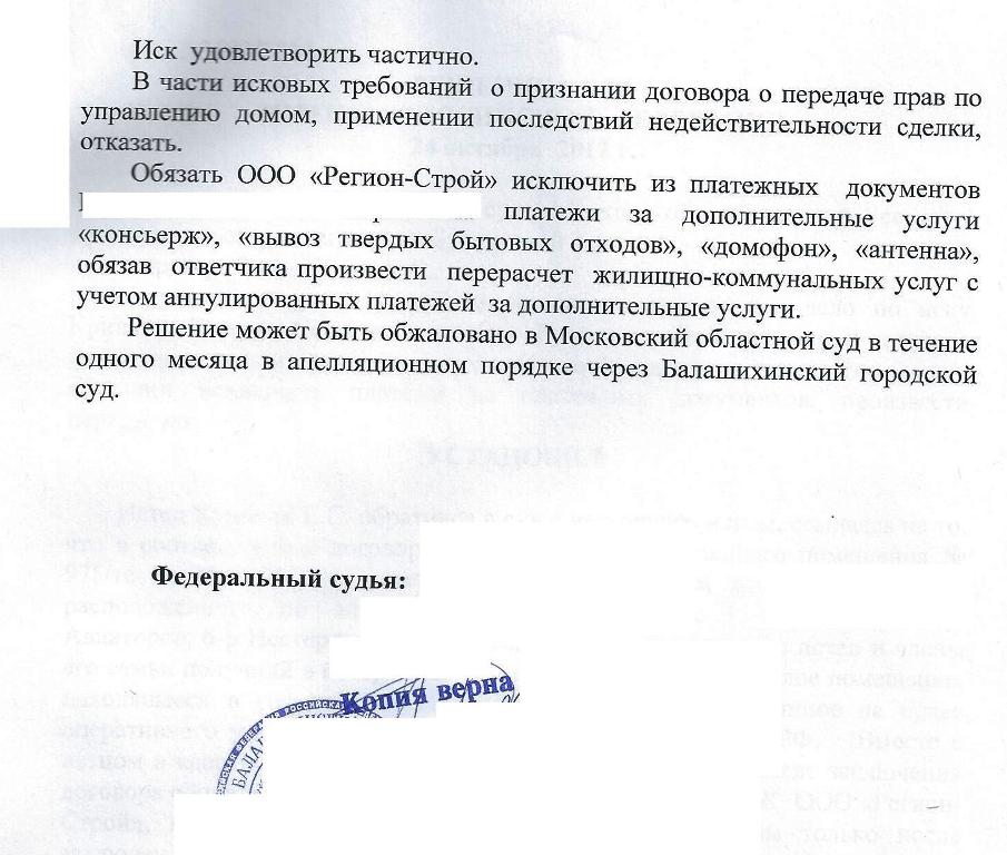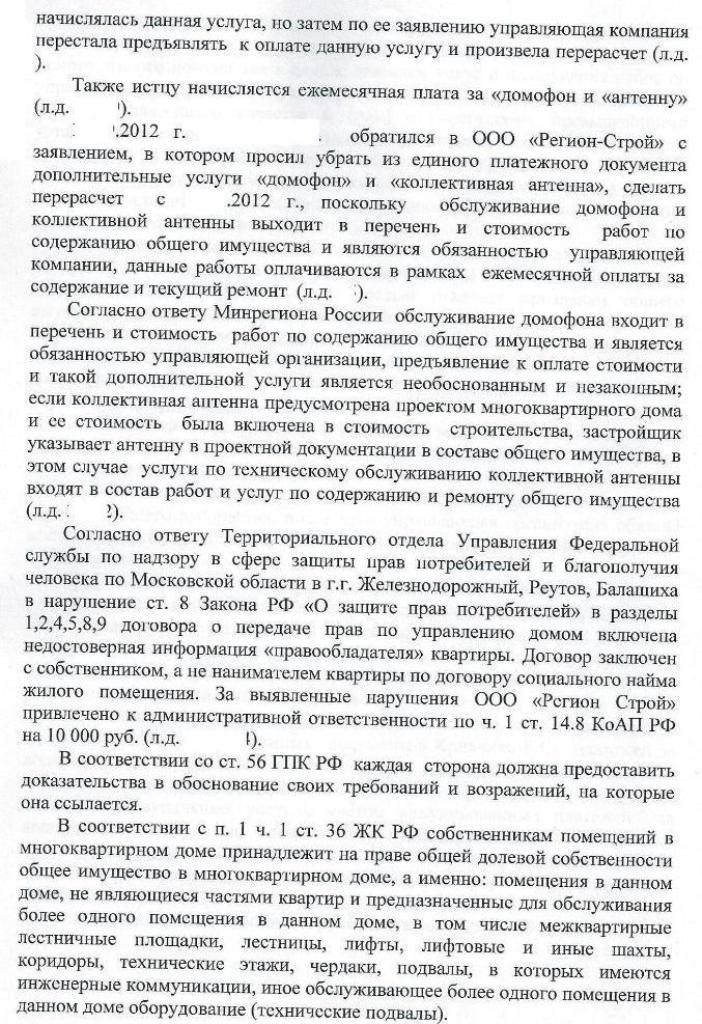 Суд как всегда потребовал исключить доп услуги, только из платежек истца. Нет чтобы обязать УК прекратить нарушение по отношению ко всем жителям....