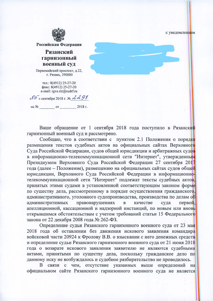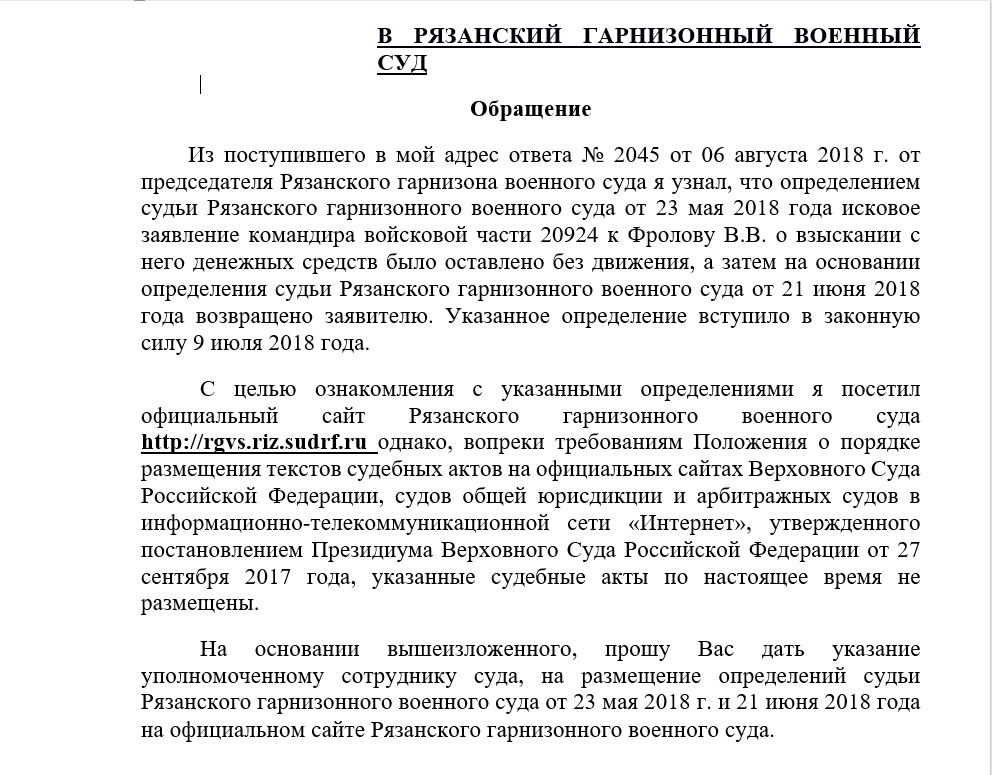 Также в деле оспаривается и увольнение без жилья, и исключение без производства полного расчета по ДД (был лишен ДД на основании расследования произведенного уборщицей ВК бабой Машей), и бездействие командования по предоставлению отпуска (отпуска якобы были предоставлены на основании приказа ВК и по указанному ВК месту их проведения, который вообще является гражданской мордой и не имеет права издавать приказы в отношении воинов.