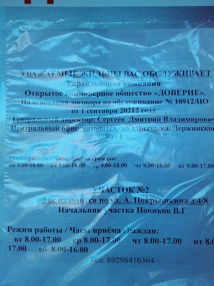 давайте перенесемся на проезд Репина 40, не подскажите тлф службы расселения или участка, кто там сейчас правит Доверие или ....