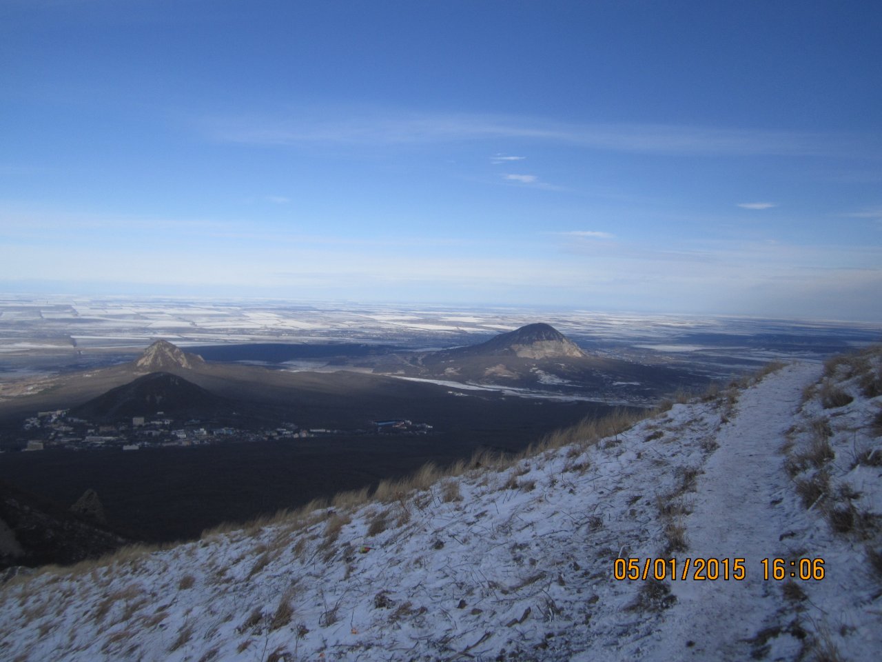 #7914Нет, ножками. Поднялся со стороны Железноводска, без всего, никаких палок лыжных. Железноводск с северной стороны Бештау, поэтому снег лежал, небольшой. Поднялся на самую высокую вершину Бештау - Большой Тау (1400м). И понял, что назад , по снегу спуститься будет проблематично, скользко. А южная сторона без снега была, поэтому я и пошёл вниз, в сторону Пятигорска. Дошёл пешочком до трамвая, доехал до рынка, сел на маршрутку и уехал в Железноводск. От Железноводска до Пятигорска, через Бештау, дошёл за 5 часов, пешочком.QR_BBPOST А как потом спускались с вершины? на 5 точке?