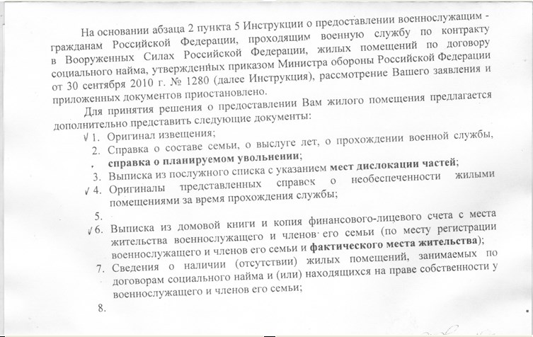 #7966П.п. 4. "Оригиналы представленных справок о необеспеченности жилыми помещениями". Мне интересно как это выглядит. У маня на протяжении 25 лет в каждом месте забирали справку, потом выписывали свою. Потом в Хользуновской кечи вынули всю душу что бы я что то им представил с каждого места. Выдали наконец одну в замен прошлых. Получается опять нужно что то доказывать?Добрый день! Сегодня получил перечень замечаний ДЖО. Всего шесть пунктов. Кому интересно, чуть позже отсканирую и выложу.