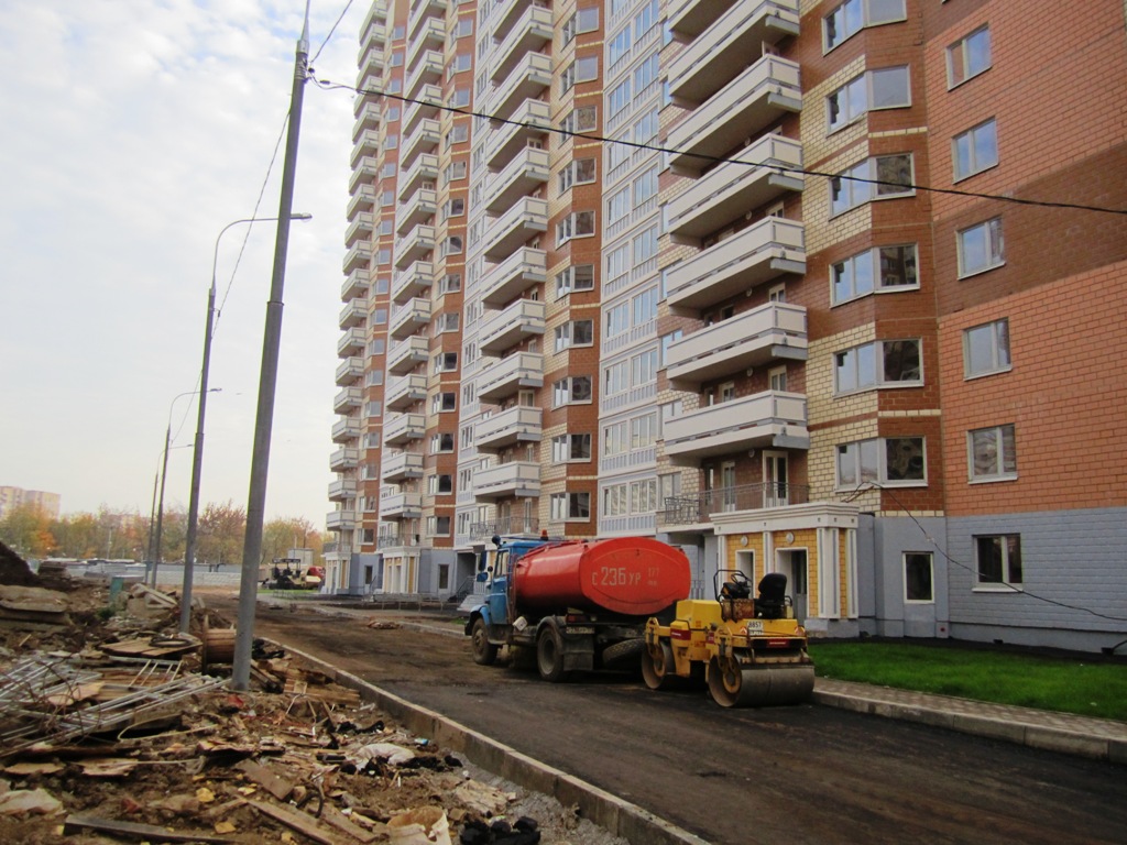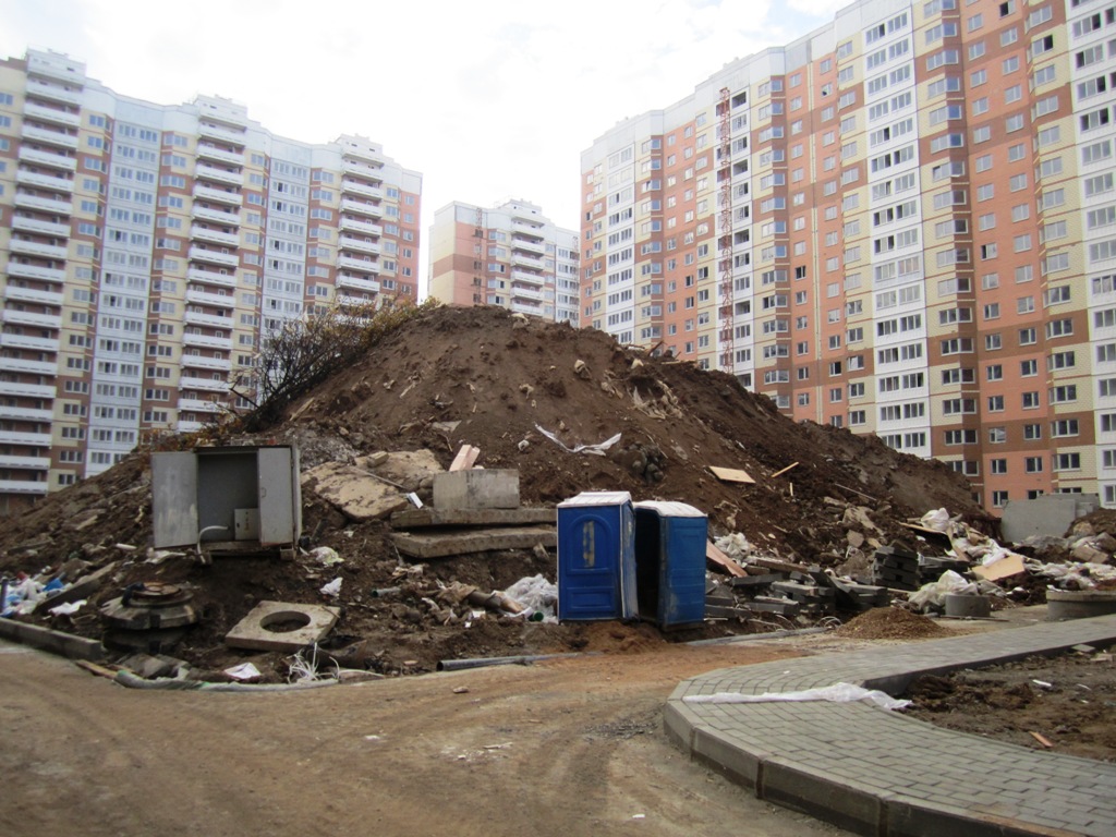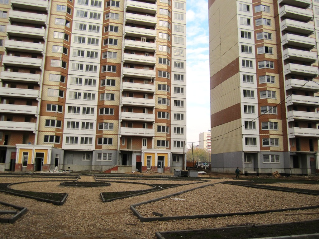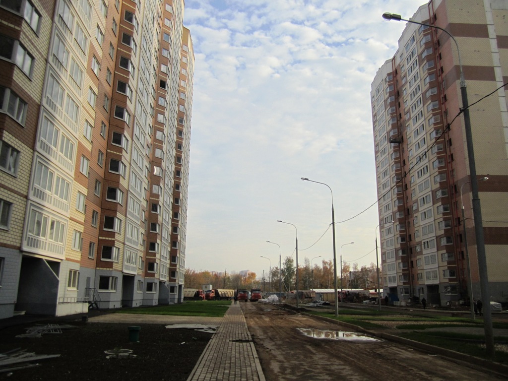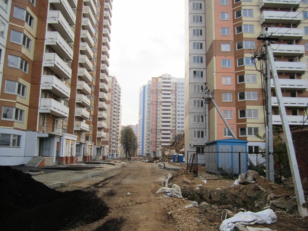 "Знакомые родственники" в нулевые годы купили в Подмосковье однушку у СУ-155, на этапе строительства. На тот момент их дом был примерно как наши - с окнами, но без коммуникаций, а вокруг пустырь и невнятные планы застройки нового микрорайона. В итоге на момент сдачи домов СУ-155, вокруг них уже построил дома ДСК-1 (П-44М), и в них жили люди.Глядя на снимки, понимаешь, что июль 2015 года - это очень оптимистичный прогноз!!!