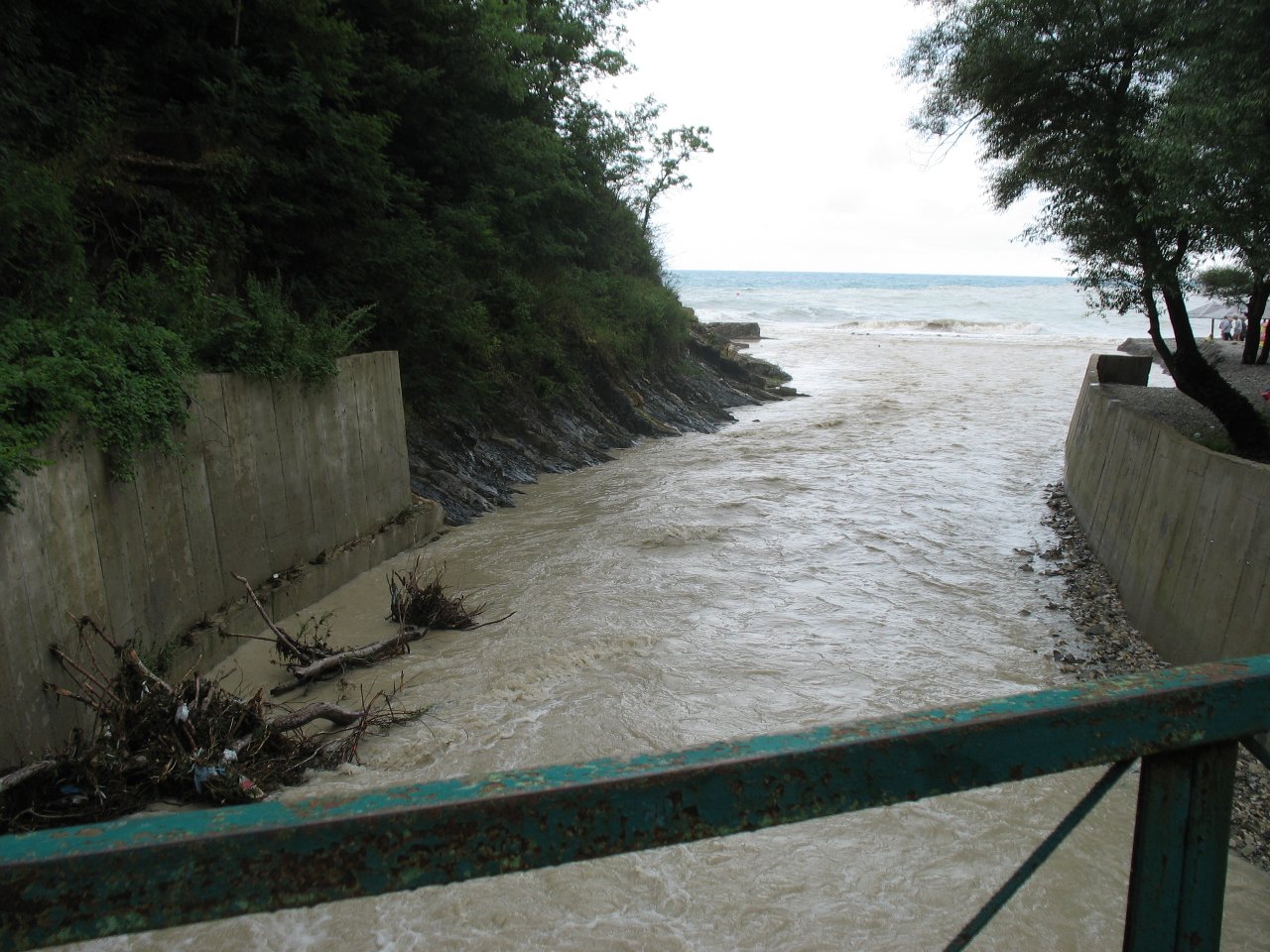 Это речка Бетта до дождя и после, а впадает в море она прямо на пляж. Снимал 1.07.16, а второго улетали, так что два пляжных дня выпали, а часть этих красивых грибков лежала на боку поваленная штормом.