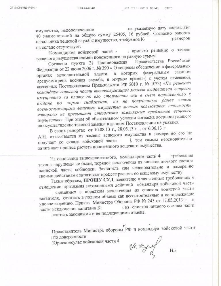 3. своими возражениями представитель части подтверждает неоднократное обращение за вещевым имуществом для окончательного расчета, тем не менее кч не сделал ничего что бы произвести расчет