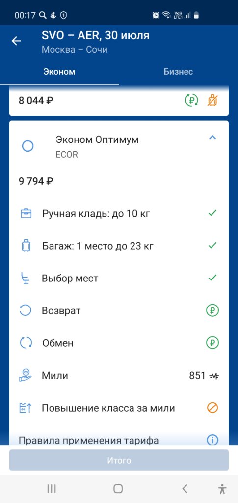 Поскольку не знаю, куда из Москвы и на какую дату Вы планируете покупать билеты, то для наглядности в качестве примера выбрала такой вариант: Москва Сочи на 30 июля:Screenshot_20220303-001702_Aeroflot.jpg
