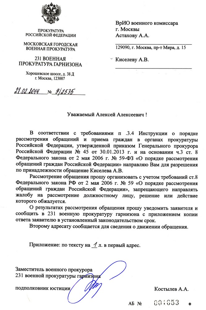 Солидарен. Просил провести проверку и принять мер прокурорского реагирования по соблюдению комиссаром закона по пенсионному обеспечению, при этом просил не пересылать мое заявление тому на кого жалуюсь. В итоге все равно 4 месяца ждал.