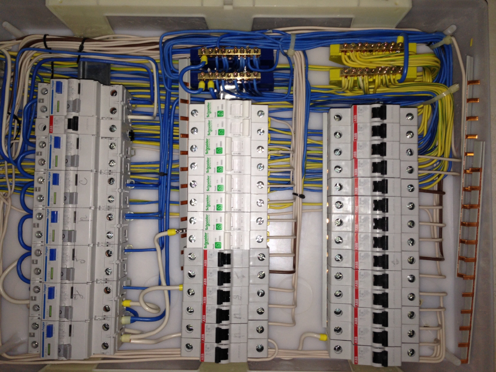 Силовой щит АВВ на 36 автоматов, под ним щит АВВ на 24 автомата (слаботочный), в который "приходят" линии TV, NETа и розетка из силового щита.