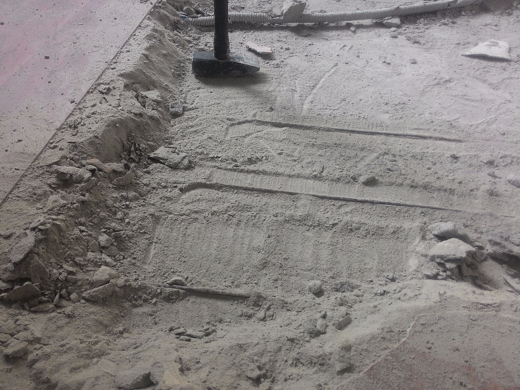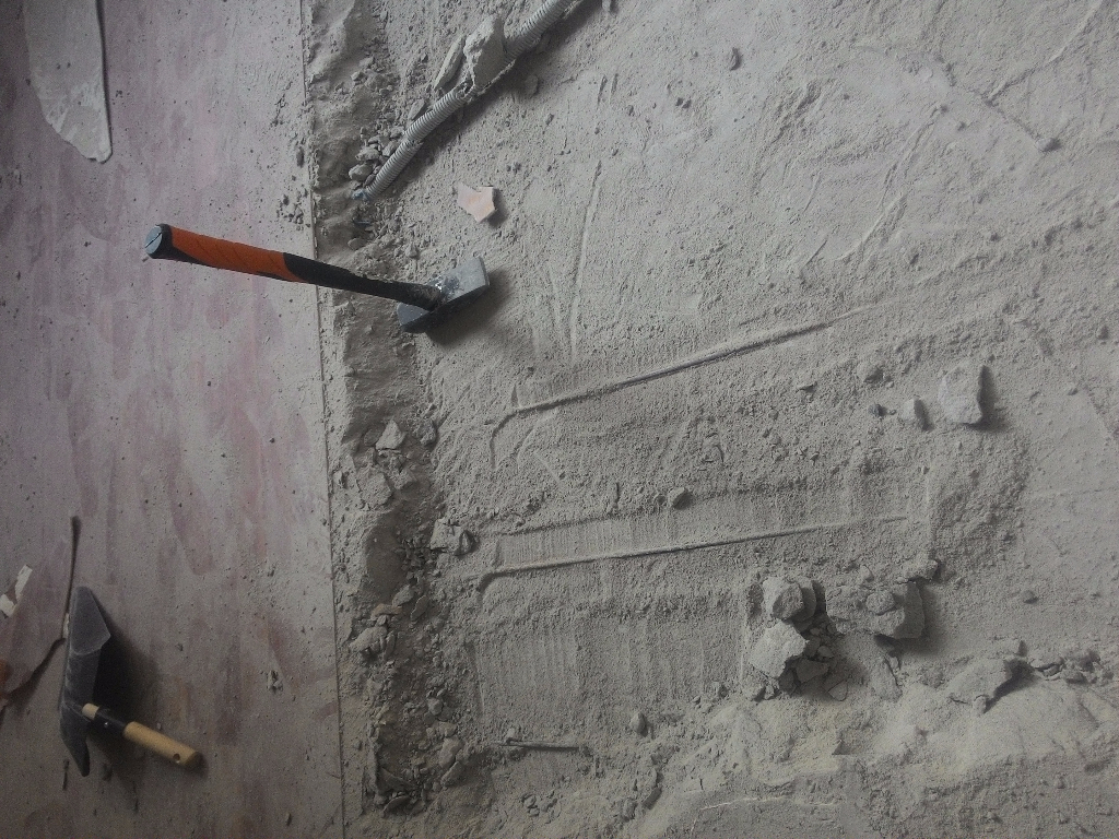 Сначала подумал, что увлекшись, слой плиты перфоратором снял
