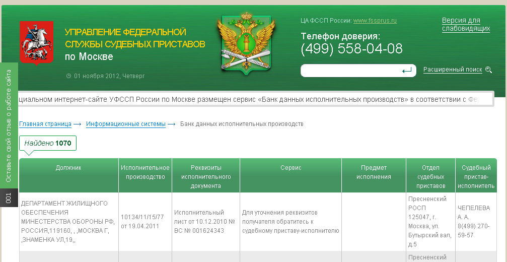 ничего не запутано. Зайдите на официальный сайт ФССП по Москве там есть поиск должников по юридическим лицам. Забейте Департамент жилищного обеспечения и посчитайте , там не за какое время а на сегодняшний день примерно 280, по крайней мере вчера было. так же и по министру столько же но там не только жилье. вы что там не разу не были???Все запутали