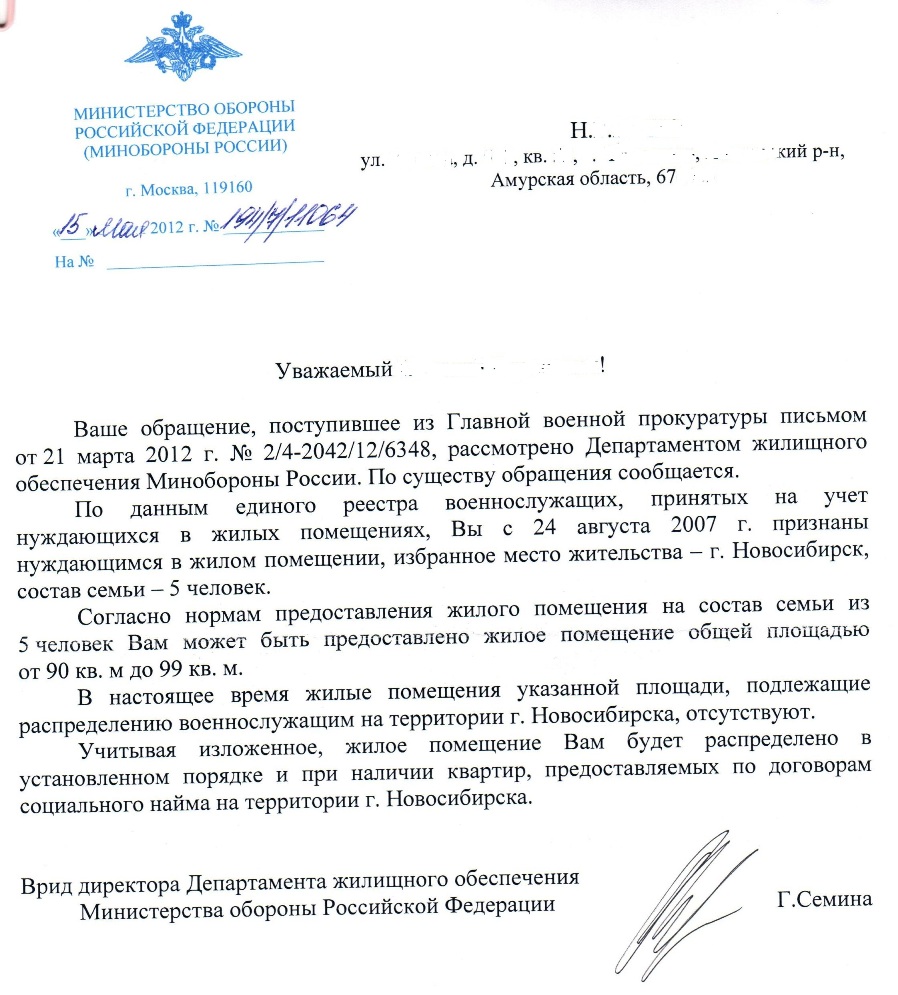 В целях своевременного обеспечения жилыми помещениями в 2012 году данным гражданам – увольняемым (уволенным) военнослужащим необходимо в течении месяца подать в ФГУ «Востокрегионжилье» МО РФ заявления о смене избранного места жительства на следующие населенные пункты:тупо переписать на Питер получить продать и купить в Новосибе, Толмачево или что там еще есть