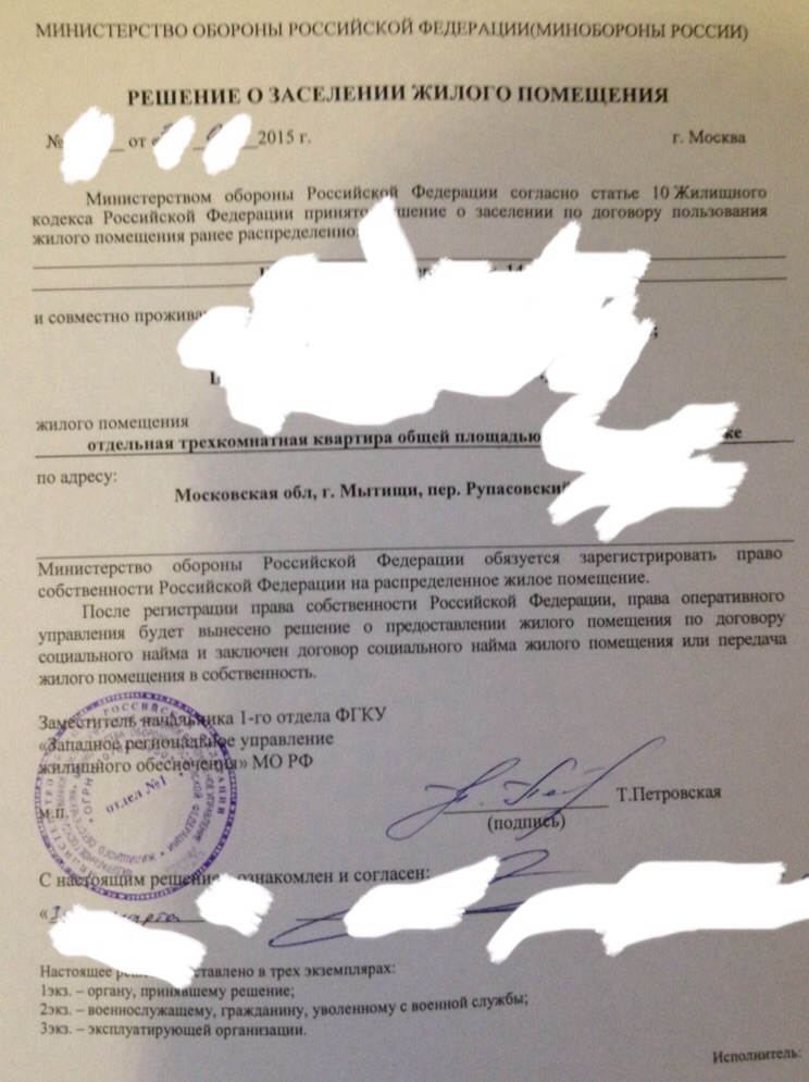 А вот в самом решении о заселении, они просто тупо добавили к рекомендуемому образцу в последнем абзаце слова: "или передача жилого помещения в собственность", даже не потрудившись согласовать этот кусок с остальным предложением. Припудрили так сказать.