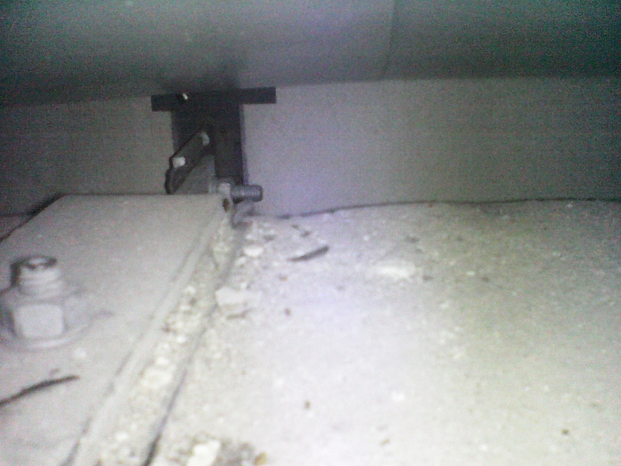 А вот почему вода так легко попадает вниз, видно на фото! Под железом на полу балкона действительно скрыта щель к соседям шириной сантиметров десять. А кронштейн-это крепление нашего остекления!!!!! Жутко стало...Хотя...наверное они всё учли, надеюсь.