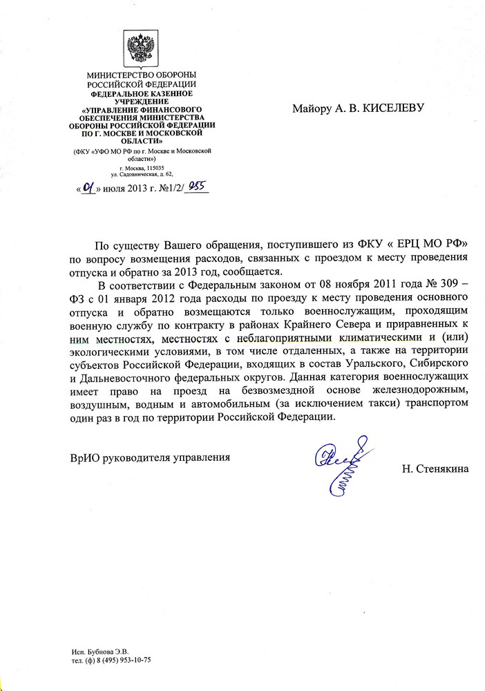 #888Уважаемый satrap71, хотелось бы услышать Ваше мнение: можно ли военнослужащему, являвшемуся на момент подписания "Соглашения" курсантом, отсудить оплату проезда в отпуск по СНГ??? Проезд по РФ есть.но и срочники имели право на халявный проезд54. Слушатели и курсанты военно-учебных заведений, суворовцы и нахимовцы имеют право на проезд за счет средств Министерства обороны при следовании в один из каникулярных отпусков (но не более одного раза в течение учебного года), в отпуска по болезни и обратно.ноь не думаю. что за ними мохранилось это право, так же сомнительно и про курсантов (на момент договора) Сеня некогда было, сыну 6 лет исполнилось, но завтра изучу все предоставленные материалы и отпишусь. что думаю, так как лучше сразу обсудить все сомнения, чем будет сюрпризом в суде, для обратившихся52. Военнослужащие действительной срочной военной службы имеют право на проезд за счет средств Министерства обороны при следовании в установленные для них отпуска, служебные командировки и обратно, а также при переводах и перемещениях по службе.