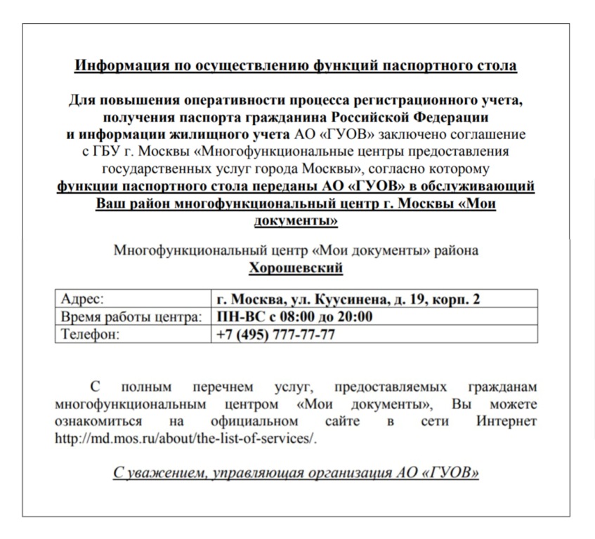 #8738Добрый вечер, по поводу регистрации по месту жительства в доме 2. Мы 12.01.2018 зарегистрировались всей семьёй. Но путь был такой: Пошли в МФЦ, там сказали, что управляющая компания не заключила договор с МФЦ на оказание услуг, поэтому рекомендовали подать документы через УК, но учитывая, что рядом с МФЦ находится УФМС пошли в УФМС, и опять мимо, так как УФМС направляет в МФЦ или через