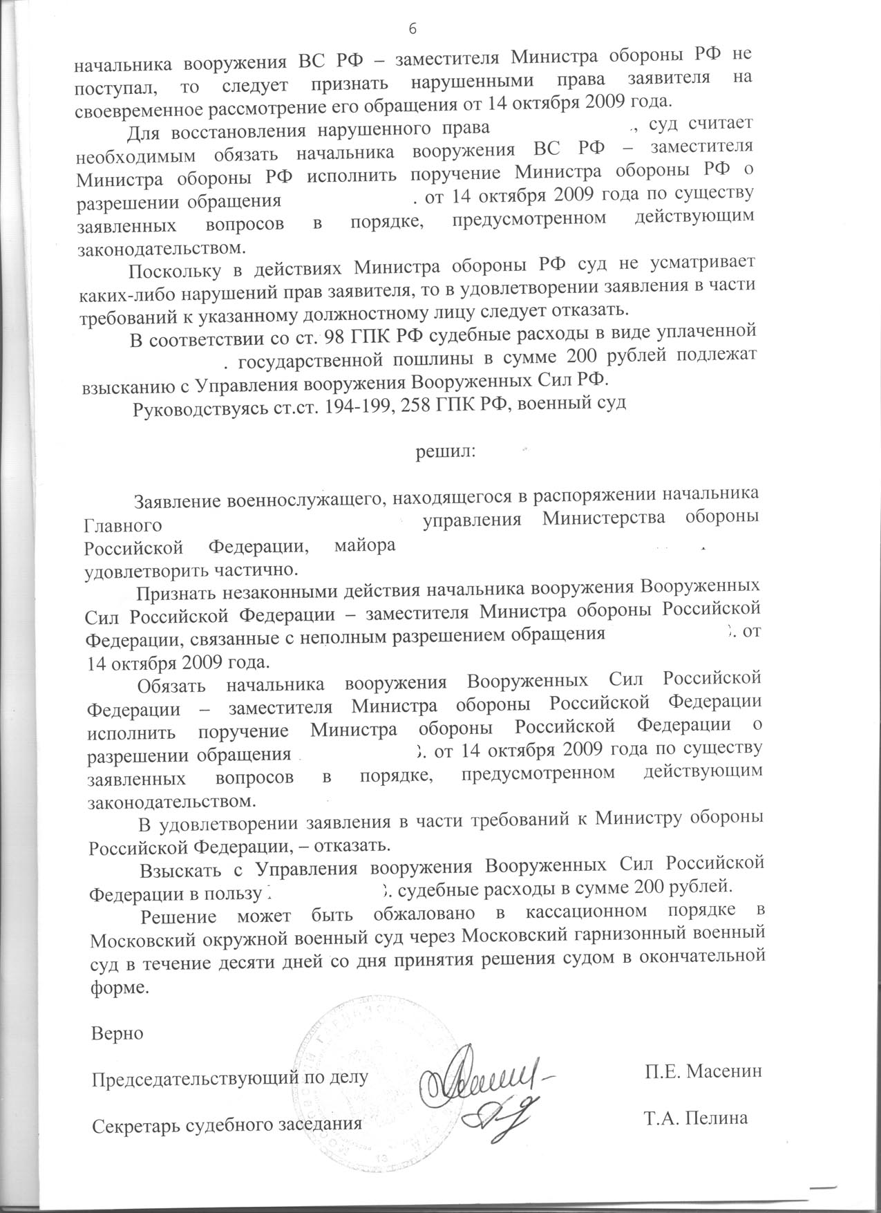 Решение может быть обжаловано в кассационном порядке в Московский окружной военный суд, через Московский гарнизонный военный суд в течение десяти дней со дня принятия решения судом в окончательной форме.