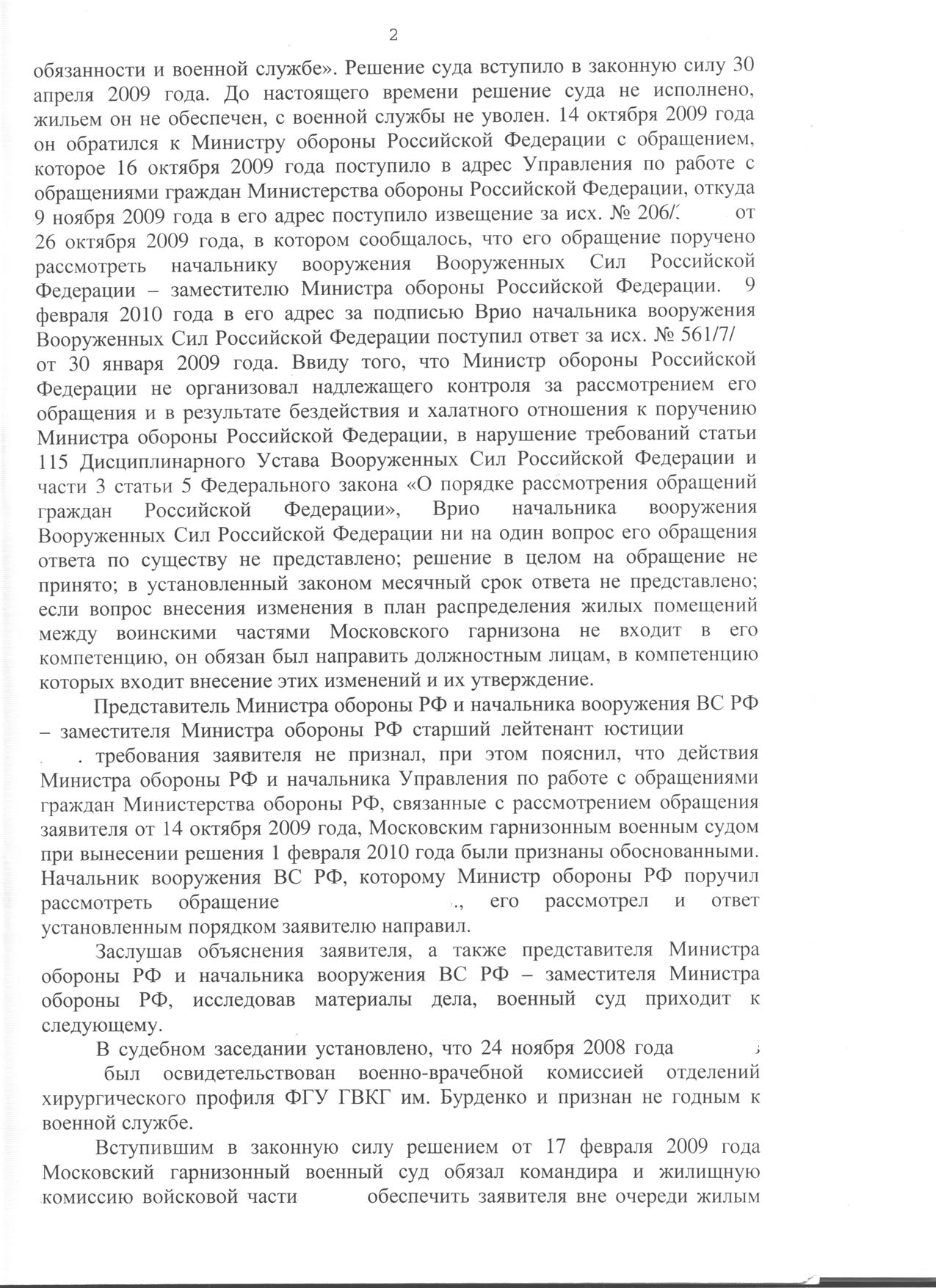 Bizant, я не совсем понял, почему Ваше обращение по жилвопросу направлено для разрешения начальнику Вооружения ВС РФ?...Это новая тема Министра – назначать ответственным исполнителем кого не попадя, чтобы продлить удовольствие обратившегося?...Свеженькое решение по п. 36 пр. 80 (попытка внести изменения в План распределения жилых помещений в Московском гарнизоне)...