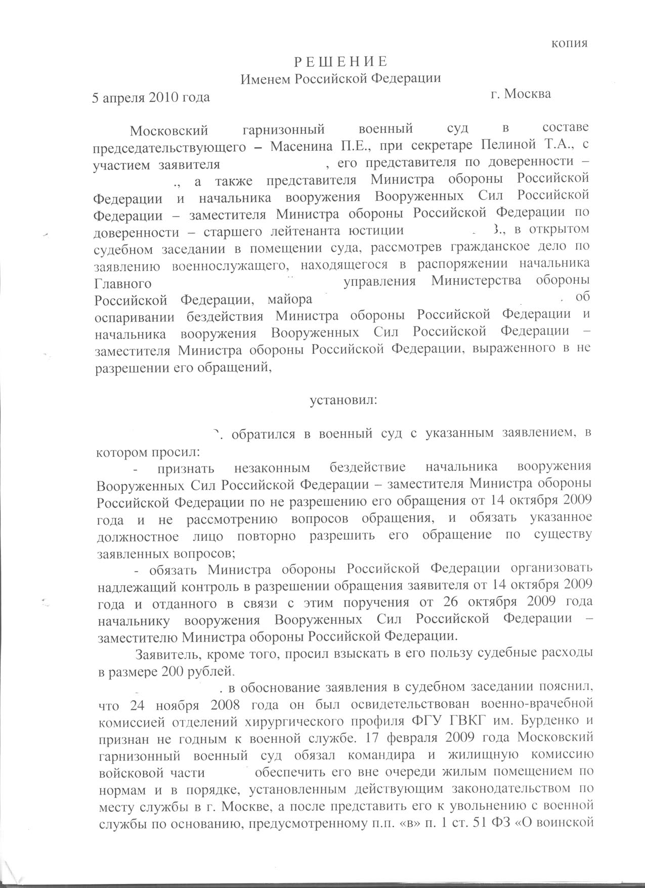 То разговоры на форуме шли об изменении судебной практики в конце 2009 года по данной категории военнослужащих, а решение суда я так не где и не увидел. Спасибо.
