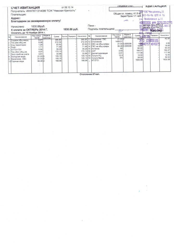 Получаю квитанции на оплату в другой квартире, там всё четко расписано до мелочей.